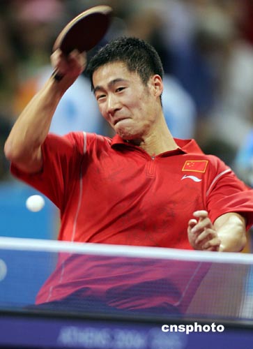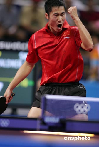 當(dāng)?shù)貢r(shí)間八月二十三日下午,在雅典奧運(yùn)乒乓球男子單打決賽中,中國(guó)選手王勵(lì)勤戰(zhàn)勝瑞典老將瓦爾德內(nèi)爾獲得銅牌。中新社記者:毛建軍