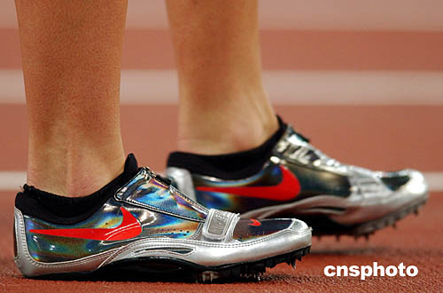 圖為在女子400米半決賽中,一名選手的球鞋特寫(xiě)鏡頭。
