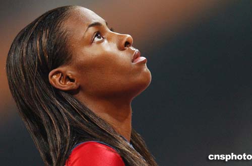 圖為女子400米半決賽前,美國選手Dee Dee Trotter集中精神為自己鼓勁的鏡頭。