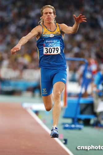 在當(dāng)?shù)貢r(shí)間22日進(jìn)行的男子三級(jí)跳遠(yuǎn)決賽中,瑞典選手奧爾森獲得金牌。