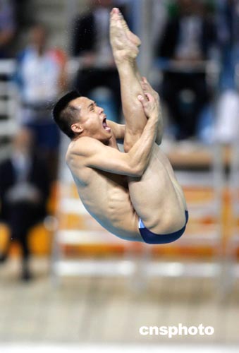 中新社雅典八月二十四日電(記者王祖敏)在男子三米板雙人跳水決賽中以罕見零分失去金牌的中國跳水隊,又以罕見的高分贏得了奧運會跳水比賽競爭最為激烈的男子單人跳板跳水金牌--二十三歲的彭勃走出雙人比賽失敗的陰影,以領(lǐng)先第二名近三十二分的優(yōu)勢奪冠,加拿大選手德斯帕蒂和俄羅斯名將薩烏丁分別獲得銀牌和銅牌,同樣表現(xiàn)出色的另一名中國選手王峰獲得第四名。