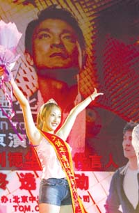 中新網(wǎng)8月25日電 據(jù)京華時報報道,令所有劉德華歌迷矚目已久的“劉德華歌迷形象代言人評選活動”終于在8月20日晚進(jìn)行了決賽。經(jīng)過采訪闡釋、現(xiàn)場采訪、才藝展示三個比賽項目的層層角逐,堪稱中國演出界的首位“歌迷形象代言人”終于揭開了她的神秘面紗,她就是在北京擔(dān)任編導(dǎo)工作的李沐怡。