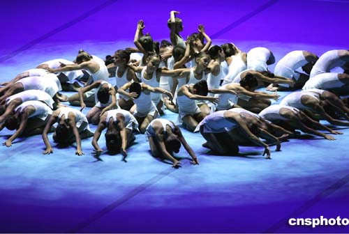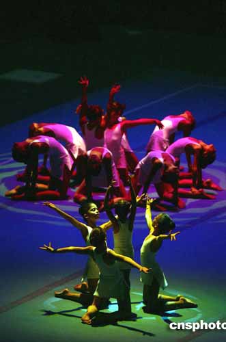 圖為當?shù)貢r間24日,在雅典體操展覽館里孩子們的精彩表演。