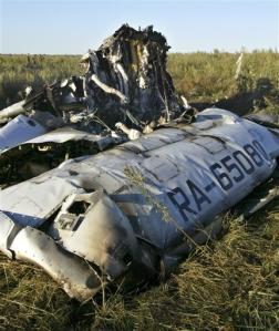 俄圖-134墜毀現(xiàn)場的飛機殘骸。(美聯(lián)圖)