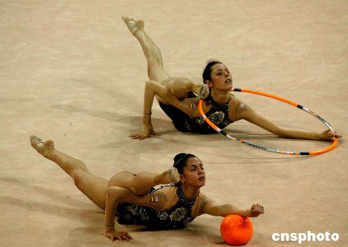 西班牙藝術(shù)體操隊(duì)于當(dāng)?shù)貢r(shí)間八月二十四日在雅典參加賽前排練。中新社記者:王瑤