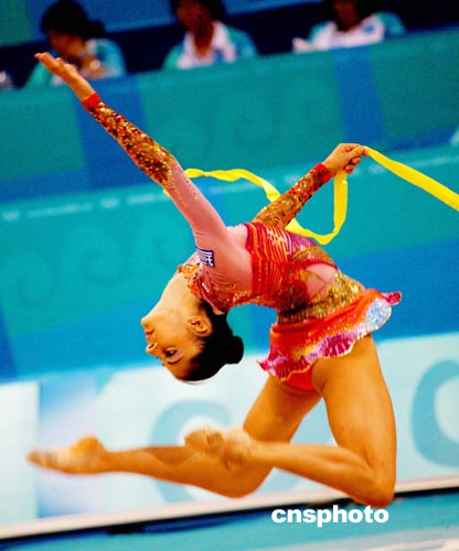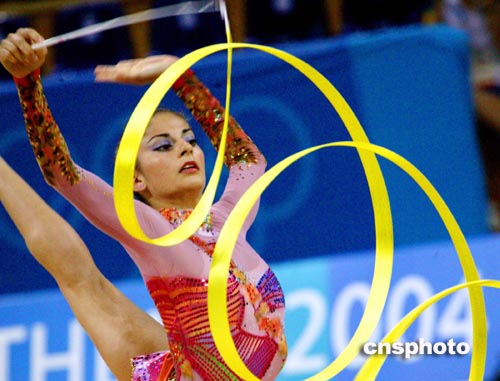 雅典當(dāng)?shù)貢r間八月二十五日,希臘藝術(shù)體操個人全能選手ANDRIOLA.E進(jìn)行奧運會賽前排練。中新社記者:王瑤