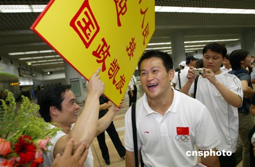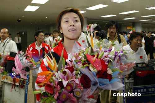 中新社北京八月二十六日電 (記者高凱李靜)首都國際機(jī)場今天再度沸騰,二百二十四名中國奧運(yùn)健兒上午九時(shí)乘坐專機(jī)從雅典返京。