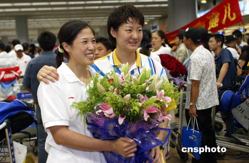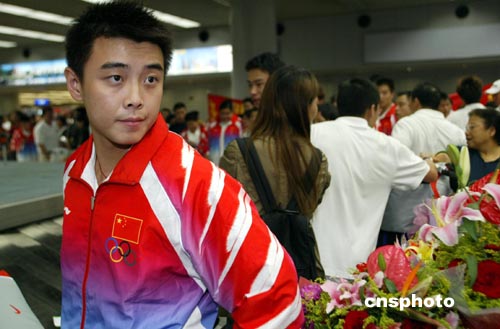 8月26日,北京首都國際機(jī)場又迎來一批載譽(yù)歸來的奧運(yùn)健兒,包括羽毛球、乒乓球、游泳、體操、舉重等200多名選手,他們在機(jī)場受到英雄般的歡迎,幾乎每個人都被鮮花包圍。中新社記者:盛佳鵬