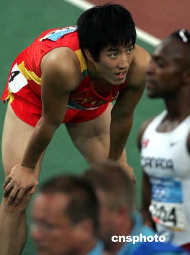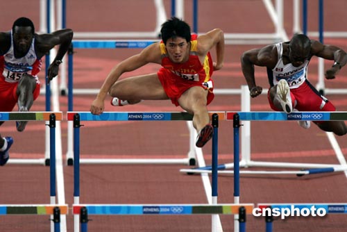 當(dāng)?shù)貢r間8月26日晚,雅典奧運會田徑比賽繼續(xù)進行,奪標大熱門、中國的劉翔在110米欄半決賽中以13秒18的成績輕松晉級決賽。在參加決賽的八名選手中,劉翔的預(yù)賽成績名列第四,將在第六道參加決賽。中新社記者:任晨鳴