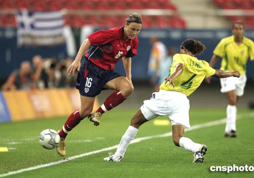 圖為在當(dāng)?shù)貢r(shí)間26日舉行的女足決賽中,巴西隊(duì)員Tania的表現(xiàn)。