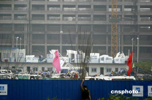 8月27日下午,北京市朝陽區(qū)洼里鄉(xiāng)地區(qū)出現(xiàn)突發(fā)強對流天氣,形成強烈局地旋風,將國家游泳中心工地三幢臨時設(shè)施卷起,摧毀,造成43人受傷,其中2人重傷,施工現(xiàn)場的臨時設(shè)施是按抗七級風力設(shè)計的,這場突發(fā)局地旋風持續(xù)了20分鐘左右。中新社記者:盛佳鵬
