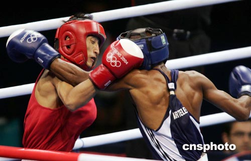 當?shù)貢r間8月27日,中國選手鄒市明(左)在奧運會拳擊男子48公斤級半決賽中,負于古巴強手揚·巴特雷米,無緣決賽。由于奧運會拳擊比賽不再進行三四名的爭奪,因此鄒市明已經(jīng)獲得銅牌。這是中國拳手在奧運會上歷史性的突破,中國拳手此前在奧運會上從未進入過前4名。中新社記者:毛建軍