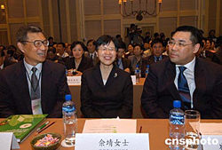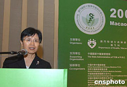 國(guó)家衛(wèi)生部副部長(zhǎng)畬靖(中)、澳門(mén)特區(qū)政府社會(huì)文化司司長(zhǎng)崔世安和來(lái)自中國(guó)內(nèi)地、港澳臺(tái)地區(qū)及加拿大、新加坡的中醫(yī)藥的專(zhuān)家學(xué)者近三百人參加了會(huì)議出席了。