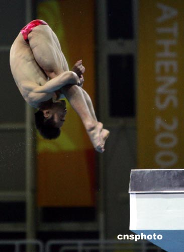 當(dāng)?shù)貢r間8月28日晚,在雅典奧運會跳水最后一項比賽--10米跳臺決賽中,中國名將胡佳奪得冠軍。中新社記者:任晨鳴