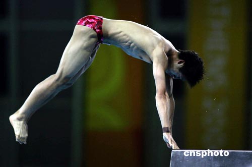 當(dāng)?shù)貢r(shí)間8月28日晚,在雅典奧運(yùn)會(huì)跳水最后一項(xiàng)比賽--10米跳臺(tái)決賽中,奪標(biāo)呼聲最高的“跳水王子”田亮意外失手,僅僅獲得第三名。中新社記者:任晨鳴