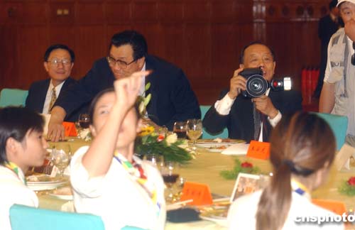 外交部部長(zhǎng)李肇星興之所至,借來(lái)記者的相機(jī)為奧運(yùn)健兒留下精彩瞬間。中新社記者:武仲林