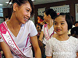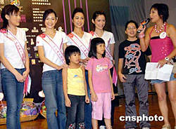 參加2004亞洲小姐競選的香港十二位佳麗,九月四日來到香港保良局以關(guān)懷社會、宣揚(yáng)愛心為題親善探訪入住兒童宿舍的一班小朋友。作者:錢興強(qiáng)