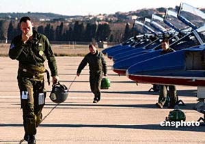 中新網(wǎng)9月7日電 日前,法國空軍飛行表演隊(duì)先遣組組長讓·馬克在北京透露,“法蘭西巡邏兵”飛行表演隊(duì)10月將隨希拉克總統(tǒng)到訪北京,在北京南苑機(jī)場舉行兩場表演,然后赴武漢、珠海、香港巡演。法蘭西巡邏兵是世界五大特級(jí)飛行隊(duì)之一,此次隨總統(tǒng)出訪是第一次。表演隊(duì)使用阿爾法噴氣教練機(jī)。此次表演由國防部外事辦公室和空軍有關(guān)單位主辦。中新社記者:鄭萍萍