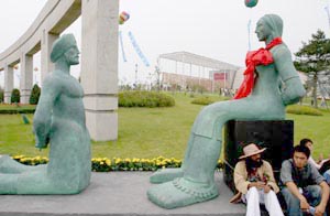 長春市舉辦的首屆“邀請展”,有來自一百三十個國家的三百四十一件雕塑作品在公園內(nèi)陳列展出。圖為印度雕塑家巴拉特展出的作品“至尊友誼”。