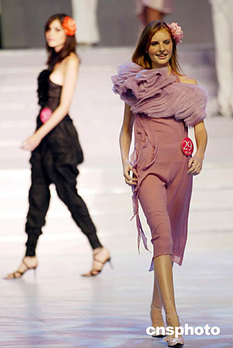 | 9月5日晚,“時(shí)尚杭州之旅·2004年新絲路世界模特大賽”在浙江省人民大會(huì)堂舉行,來自二十八個(gè)國家的四十七名選手將參加小禮服、泳裝、晚裝展示、情景劇表演以及系列專業(yè)技能展示的比賽。中新社記者:盛佳鵬