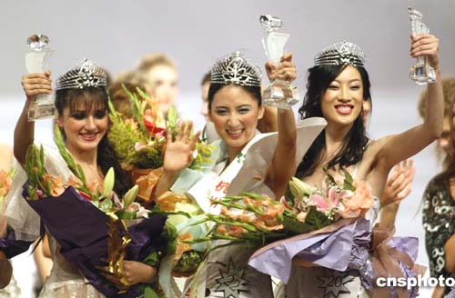 9月5日晚,“時(shí)尚杭州之旅·2004年新絲路世界模特大賽”在浙江省人民大會(huì)堂舉行,來(lái)自二十八個(gè)國(guó)家的四十七名選手經(jīng)過(guò)禮服、泳裝、晚裝展示、情景劇表演以及系列專業(yè)技能展示的比賽,大賽桂冠最終被中國(guó)選手李子寧(中)奪走,烏克蘭選手左娜·高維科(左)和韓國(guó)選手Kwon Hyun Ji分列二三名。中新社記者:盛佳鵬