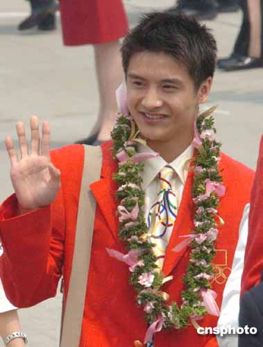 圖:中國(guó)跳水名將田亮在歡迎儀式上