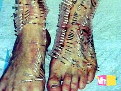 據(jù)華盛頓時報報道,被稱為“針墊人”的莫法特曾創(chuàng)下兩項吉尼斯世界記錄:第一次是在2003年1月,當時莫法特用7個小時的時間在身上扎了700針;而在2003年12月,莫法特又在4個半小時的時間內(nèi)扎了900針,打破了自己先前創(chuàng)下了的記錄。