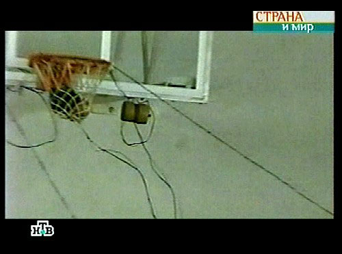 過(guò)后,健身室成了戰(zhàn)場(chǎng)。一名武裝分子蹲在地上處理炸彈,地上撒滿(mǎn)電線(xiàn)和相信是引爆炸彈的儀器。有些婦女抱著小孩,一枚炸彈就懸掛在穿過(guò)房間的幾條電線(xiàn)和籃球的網(wǎng)圈上。