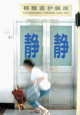 記者從一位病友家屬處了解到,移植監(jiān)護病房屬于特重病人區(qū),要求非常嚴格。一般人根本不能進入。監(jiān)護病房一般都是剛剛做完大手術(shù)的病人,由于需要無菌環(huán)境,連家屬送飯都要在紅線之外,通過醫(yī)生轉(zhuǎn)交到病人手里,器皿也要反復(fù)消毒。病房每天探視時間也只有半小時。記者趕到時已經(jīng)過了探視時間,只好在監(jiān)護病房外苦苦等候,一旦有醫(yī)生出來,記者就上前了解,希望能從醫(yī)生口中知道一些現(xiàn)況,但都被醫(yī)生拒絕了。兩個小時后,一位好心的病友家屬和記者攀談起來,從她嘴中記者才知道,傅彪手術(shù)進行了13個小時,目前情況還不太穩(wěn)定,由三個醫(yī)生親自看護,醫(yī)生照料非常精心,技術(shù)也非常高超,只要身體底子好,一般手術(shù)后三四天就能正常吃東西,到普通病房住了。不過談到手術(shù)費用,病友家屬表示,自己的愛人也剛剛做了肝移植手術(shù),手術(shù)最少也要30萬元。由于移植了新肝,一般病人都會出現(xiàn)排斥反應(yīng),病人一生都要吃一種減輕排斥的藥。一天吃4粒,每粒40元?梢灶A(yù)見,即使痊愈后,病人也將背上沉重的經(jīng)濟壓力。