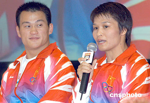 國(guó)家奧運(yùn)金牌代表團(tuán)9月8日在香港大學(xué)陸佑堂與學(xué)生真情對(duì)話,女子柔道52公斤級(jí)金牌得主冼東妹細(xì)訴奪金歷程,身旁為舉重69公斤級(jí)金牌得主張國(guó)政在旁細(xì)心聆聽。作者:鄧慶樂