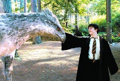 中新網(wǎng)9月9日電 據(jù)信息時報報道,在《哈利·波特3》中,出現(xiàn)很多令人驚異的動物包括烏嘴、鷹頭馬身有翼獸、盧平教授秘密的心魔狼人、阿茲卡班的獄卒攝魂怪。還有魔法交通工具騎士公車、膨脹后的瑪姬姑媽、赫敏的寵物歪腿和羅恩所飼養(yǎng)的老鼠斑斑。