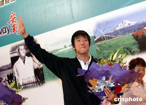 在雅典奧運會上獲得跨欄冠軍的中國運動員劉翔,九月十二日應邀參加安利(中國)日用品公司舉辦的活動。隨同他的教練向社會呼吁減少邀請活動,給劉翔更多的訓練時間。中新社記者:宋吉河