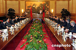 中國國務(wù)院總理溫家寶九月十三日下午在北京人民大會堂東門外廣場主持儀式,歡迎來訪的阿爾巴尼亞總理納諾。這是中阿總理三十八年來的首次會晤。中新社記者:毛建軍
