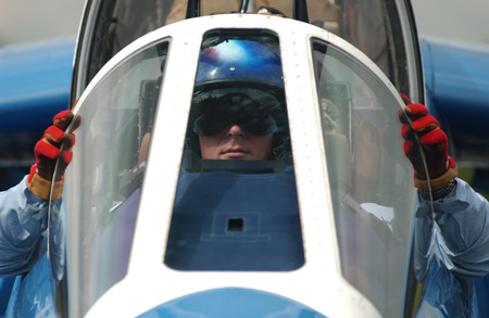 法國空軍的“法蘭西巡邏兵”飛行表演隊(duì)正式成立于1964年2月。飛行表演隊(duì)的飛機(jī)涂著同法國國旗一樣的紅、白、藍(lán)三種顏色,機(jī)群在空中做飛行表演時(shí)也常常把著三種顏色的煙跡留在空中。它象征著“自由”(紅色)、“民主”(白色)、“博愛”(藍(lán)色),體現(xiàn)了法國人民勇敢、浪漫的傳統(tǒng)和對未來美好的愿望。圖為駕駛員正在調(diào)整坐姿(來源:艦船知識網(wǎng)絡(luò)版)