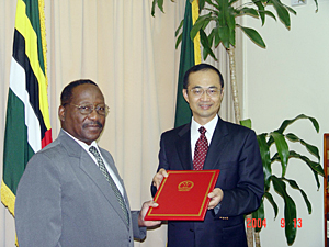 葉大波大使首先向利物浦總統(tǒng)閣下轉(zhuǎn)達(dá)了胡錦濤主席和溫家寶總理的親切問候,并代表中國政府和人民向多米尼克政府和人民致以崇高的敬意和良好的祝愿。葉大使說,多米尼克國自獨(dú)立以來,為維護(hù)國家主權(quán)、振興民族經(jīng)濟(jì)進(jìn)行了不懈的努力,取得了重要成就。多政府奉行獨(dú)立自主的外交政策,努力發(fā)展同世界各國的友好合作關(guān)系,促進(jìn)了加勒比地區(qū)的穩(wěn)定和發(fā)展。中國政府和人民衷心祝愿多米尼克國在未來的歲月中取得更大的成就。