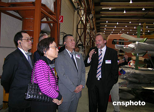 當?shù)貢r間十三日下午﹐何厚鏵來到德國慕尼黑著名的西門子公司參觀訪問﹐在生產(chǎn)機車的工廠﹐何厚鏵等人聽取公司負責人介紹。作者:孫兆震