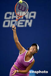 九月十五日,中國網(wǎng)球公開賽ITF女子單打第二輪比賽在北京網(wǎng)球中心的中央球場進行,中國選手鄭潔以二比零的比分戰(zhàn)勝新西蘭選手巴克爾。中新社記者:盛佳鵬