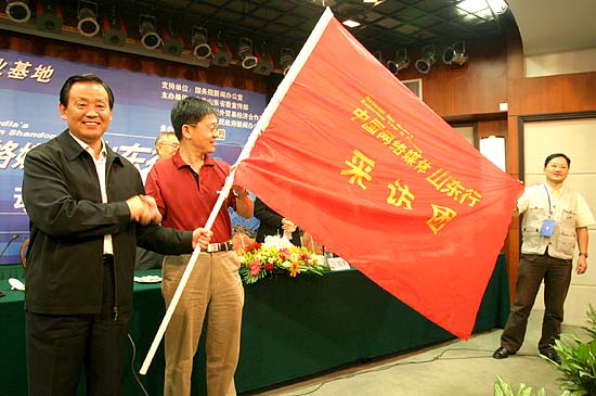 山東官員向“中國(guó)網(wǎng)絡(luò)媒體山東行”采訪團(tuán)授旗