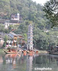 中國(guó)著名作家沈從文筆下清幽靈秀、碧波蕩漾的沱江穿梭在湘西鳳凰古城,流淌著鳳凰人祖祖輩輩的悲歡離合。正在舉行的湖南旅游節(jié),吸引不少游客泛舟江上感受其魅力。作者:劉雙雙