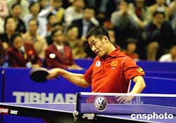 二零零四大眾汽車(chē)中國(guó)乒乓球公開(kāi)賽九月十九日下午在長(zhǎng)春市五環(huán)體育館落下帷幕,四項(xiàng)冠軍全被中國(guó)選手獲得。在引人關(guān)注的男子單打比賽中,王勵(lì)勤以四比三險(xiǎn)勝隊(duì)友王皓,獲得冠軍。作者:史一博