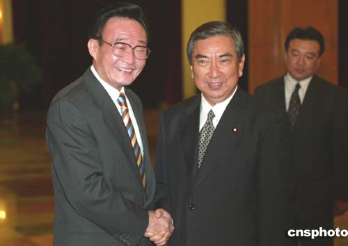 全國人大常委會(huì)委員長吳邦國九月二十日在北京會(huì)見日本眾議院議長河野洋平率領(lǐng)的日本眾議院代表團(tuán),并舉行會(huì)談。中新社記者:滿會(huì)喬