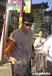 前來橫濱參加二00四國際田聯(lián)全明星大獎賽的劉翔,二十二日在抵達(dá)賽地之前來到橫濱中華街,為正在這里舉行的“揚帆青島,相約奧運”巡回展助陣,因為怕驚動游客而耽擱他接下來的賽前訓(xùn)練,戴著墨鏡的劉翔在中華街朝陽門的牌樓前匆匆而過。但依然有眼尖的僑胞認(rèn)出,在一旁為其能在大獎賽中再有出色表現(xiàn)而默默祈愿。中新社記者:王健