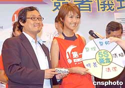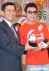 歌星許志安9月23日在香港出席由職業(yè)安全健康局、勞工處及香港電臺(tái)聯(lián)合舉辦「精靈一點(diǎn)---職業(yè)衛(wèi)生約章簽署儀式」記者會(huì),助理廣播處長邵盧善向「職安健大使」許志安頒贈(zèng)紀(jì)記品。作者:鄧慶樂