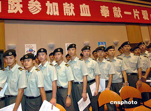 據(jù)香港中通社報(bào)道,今天上午,來自陸、海、空三軍的四百名官兵精神抖擻,以獻(xiàn)血這種方式,表達(dá)對(duì)香港市民的愛心。駐港部隊(duì)司令員王繼堂視察了獻(xiàn)血活動(dòng)。他說,駐港部隊(duì)官兵參加這一活動(dòng),是對(duì)香港市民、香港社會(huì)的貢獻(xiàn),用這種行動(dòng)贏得香港市民、香港社會(huì)的了解,也是展示駐港部隊(duì)“文明之師,威武之師”的機(jī)會(huì),有利于進(jìn)一步增進(jìn)駐軍與香港市民、香港社會(huì)的溝通,加深市民對(duì)駐軍的了解。