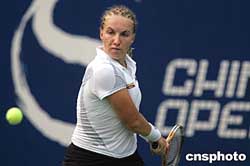 新科美國網球公開賽冠軍、俄羅斯選手庫茲涅佐娃,九月二十四日在中國網球公開賽中以2比0擊敗阿根廷選手杜爾科進入前四名,將與同是俄羅斯的美女莎拉波娃爭奪決賽權。中新社記者:任晨鳴