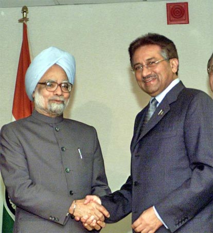 辛格和穆沙拉夫在紐約參加聯(lián)合國(guó)大會(huì),他們先舉行了單獨(dú)會(huì)談,之后其他官員加入了會(huì)談。