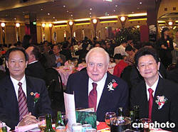澳大利亞新南威爾士州華人華僑當(dāng)?shù)貢r(shí)間9月26日舉行盛大聯(lián)歡晚會(huì),熱烈慶祝中華人民共和國成立五十五周年和中國的傳統(tǒng)節(jié)日中秋節(jié)。中國駐澳大使的代表曹東昌(右)、中國新任駐悉尼總領(lǐng)事邱紹芳(左)、澳大利亞前總理惠特拉姆(中)以及新州各界人士600多人歡聚一堂。作者:劉雨生