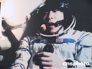 楊利偉在太空中拍攝自己飲食瞬間的精彩畫面。