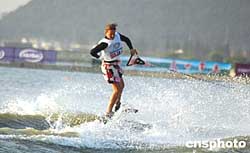 二○○四“明日星城”世界杯滑水賽九月三十日在江蘇常熟尚湖風景區(qū)拉開帷幕。來自十六個國家和地區(qū)的五十四名選手將三天內將角逐男女跳躍、男女回旋、男女花樣共六個單項的比賽。據(jù)悉,十月二日上午將進行各個單項的決賽。作者:蔣振江