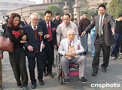 適逢南開學校百年華誕,由海內(nèi)外南開校友捐建的“百年南開紀念碑”,十月六日在天津翔宇公園落成。數(shù)學大師、南開老學長陳省身坐輪椅親臨紀念碑落成典禮。作者:孫志民